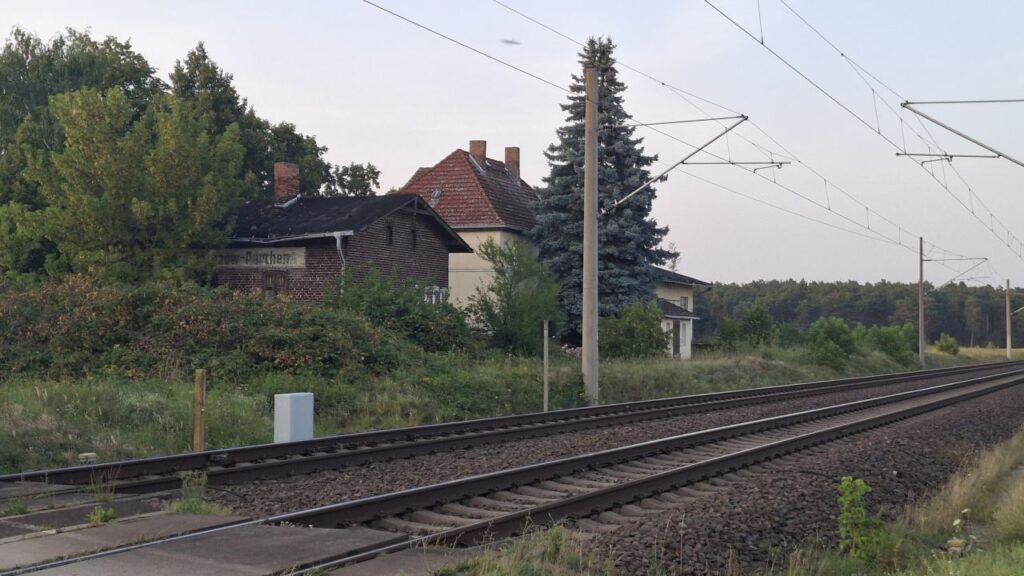 Nach dem Besuch bei der Oma und einen kurzen Stopp bei Marktkauf fahren wir nach Parchen in den Landgasthof Deinert. Dort beziehen wir unser Doppelzimmer und erholen uns etwas von den 36°. Dann schauen wir kurz zum Schloss. Später gibt es Abendessen. Pfifferlinge mit Rührei für mich. Ein kleiner Spaziergang zur Ölmühle hält uns etwas in Bewegung. Micha zeigt mir noch einen lost place. Den stillgelegten Bahnhof Bergzow-Parchen. Dann verziehen wir uns ins Zimmer. Es ist immer 29° puh…