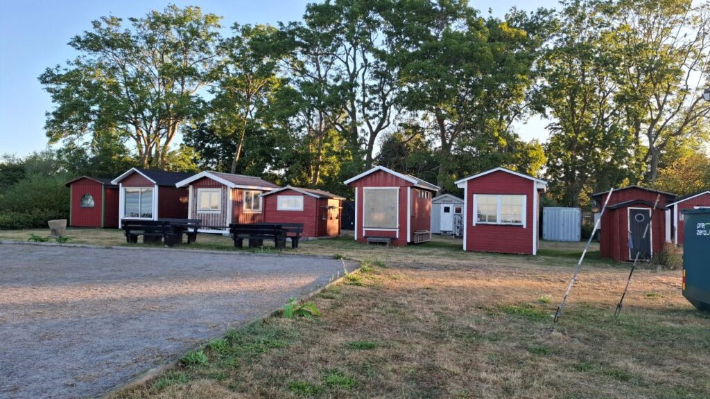 Dann fahren wir noch etwas und kommen auf dem Sandsgog Campingplatz bei Ystad an. Hier gibt es eine Hütte für uns mit Grill und Whirlpool. Beides wird heute noch getestet und für gut befunden. Der Strand ist auch nur ein paar Minuten entfernt. Das ist nun das letzte Ziel vor unserer Fahrt mit der Fähre zurück.