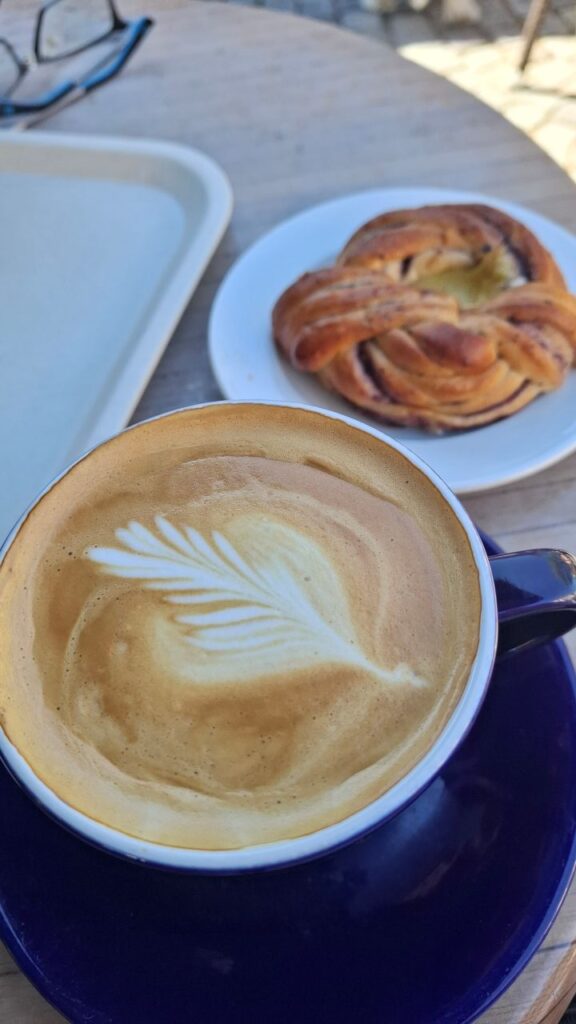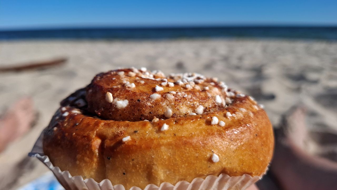 Dann fahren wir zum Bungalow. Nach einer Pause geht es zum Meer. Man kann nur ganz kurz rein. Es ist einfach zu kalt und windig. Danach holen wir Brot und Kardamom-Rollen. Die gibt es gleich mit Kaffee bzw. Tee. Wir hüpfen noch mal in den Whirlpool. Später gibt es Abendessen und noch einen Spaziergang.