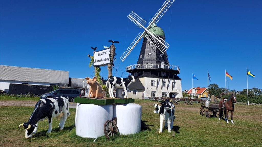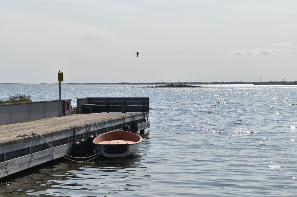 Heute fahren wir nach dem Frühstück in den Norden der Insel. Zuerst geht es nach Byxelkrok. Wir kommen an ein paar Mühlen vorbei. In Byxelkrok gibt es eine Fähre zum Festland, ein paar Fischerhäuser und viele Fahrräder. Wir essen Fisch und Chips an einer der Hütten und kaufen geräucherte Flundern.