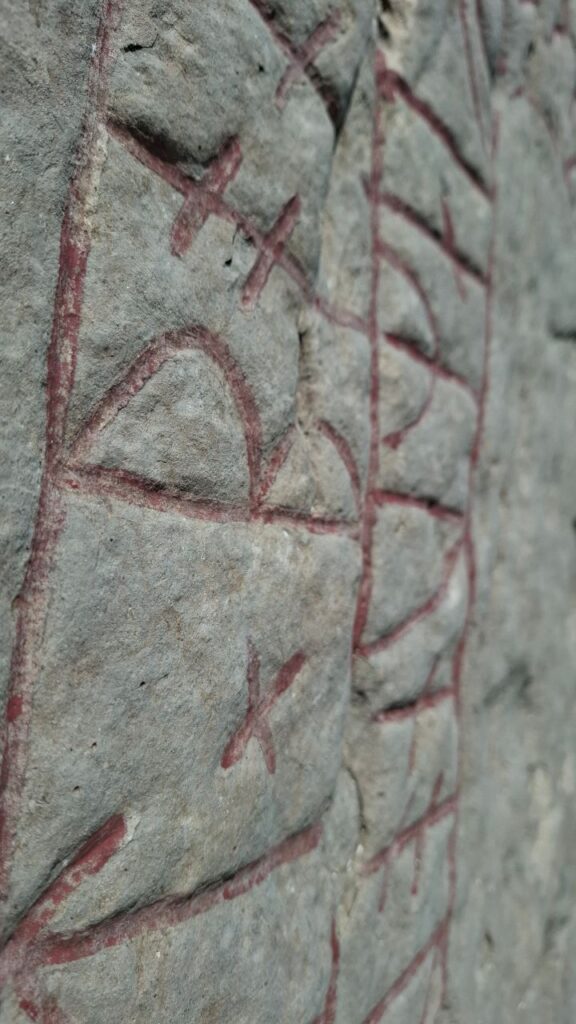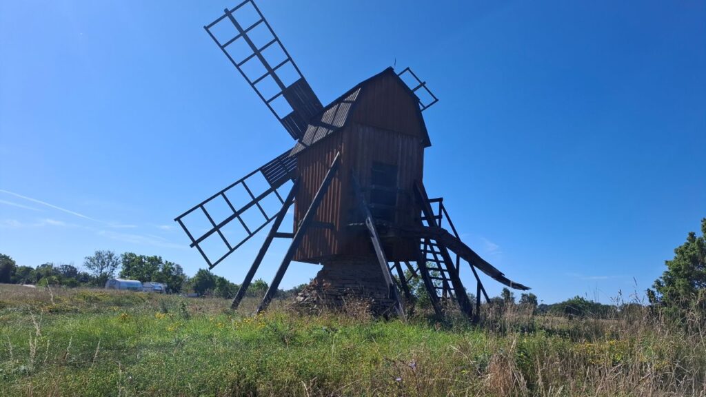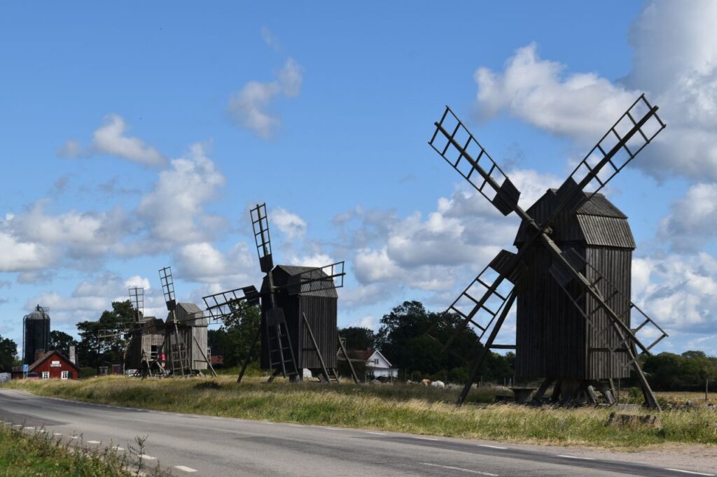 Es gibt hier Mühlen in einer Reihe. In eine kann man auch reinschauen. Die stehen direkt an der Straße und gegenüber ist ein Runenstein (Runsten). Das war auch einen Stop wert.
