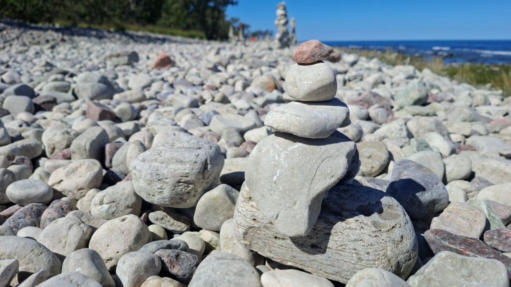 Dann geht es zum Leuchtturm Långe Erik. Eine kurze Wanderung um die kleine Halbinsel und ein Blaubeereis müssen es schon sein. Hier gibt es den ganzen Strand voll Trollhäuser. Ein kleines habe ich auch gebaut.