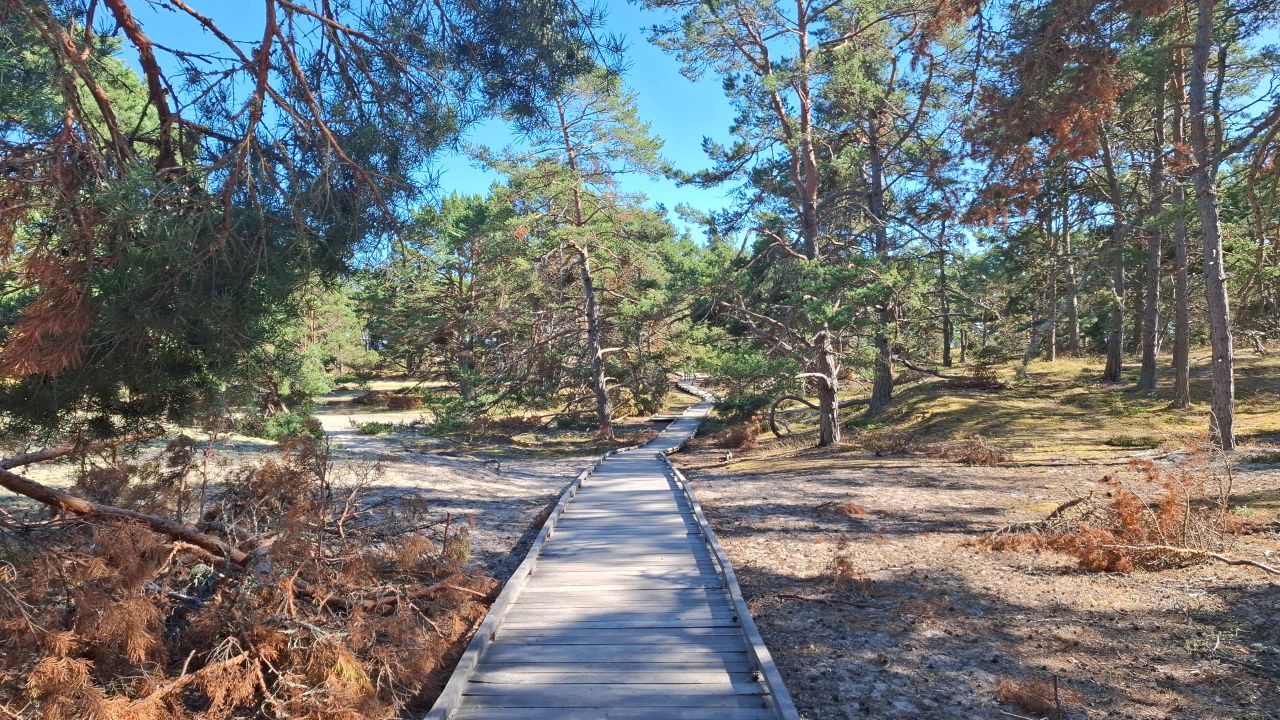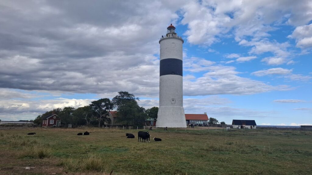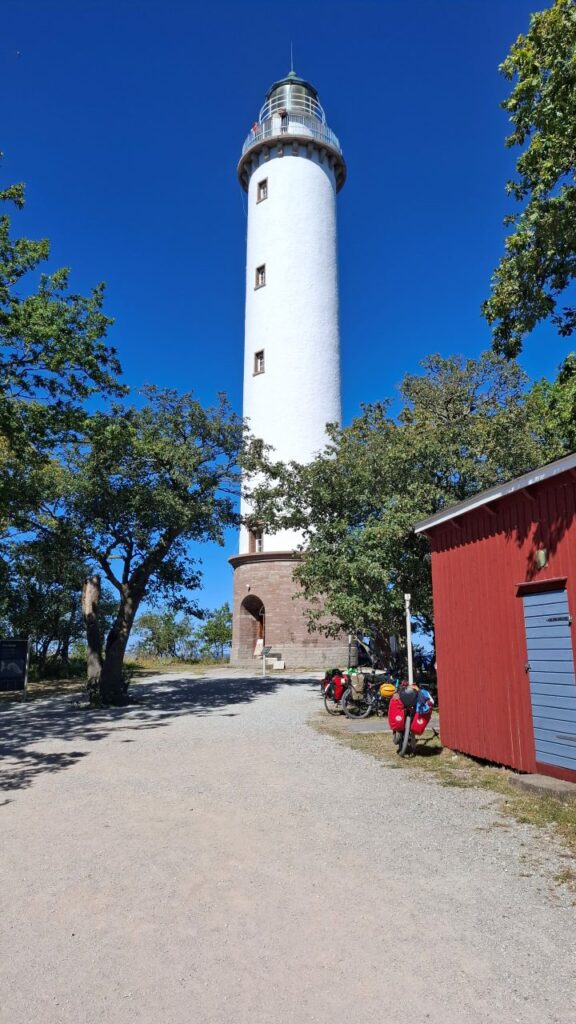 Wir machen noch eine kleine Wanderung zum Borgholm Leuchtturm. Es ist sehr windig. Der Weg ist wirklich schön durch den Wald und an der Küste entlang. Den Leuchtturm übersehen wir fast. Er ist klein und hinter ein Busch. Aber die Aussicht auf das Meer ist wunderschön.
