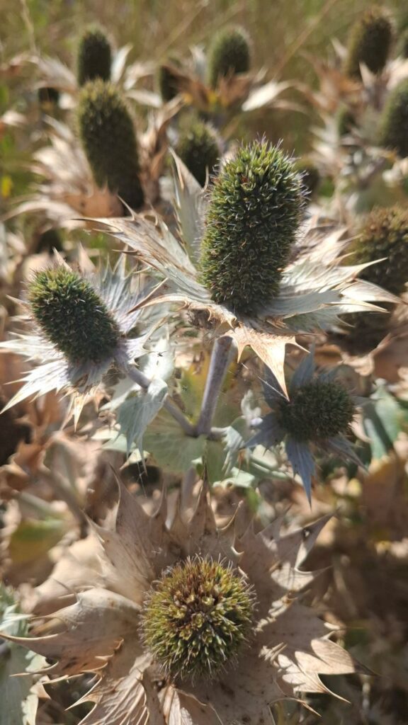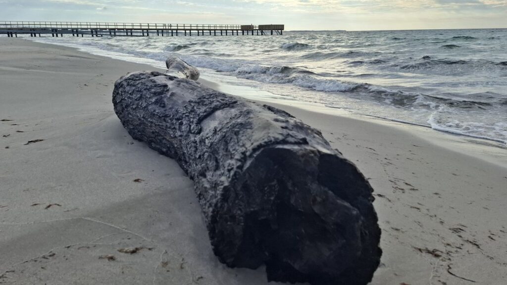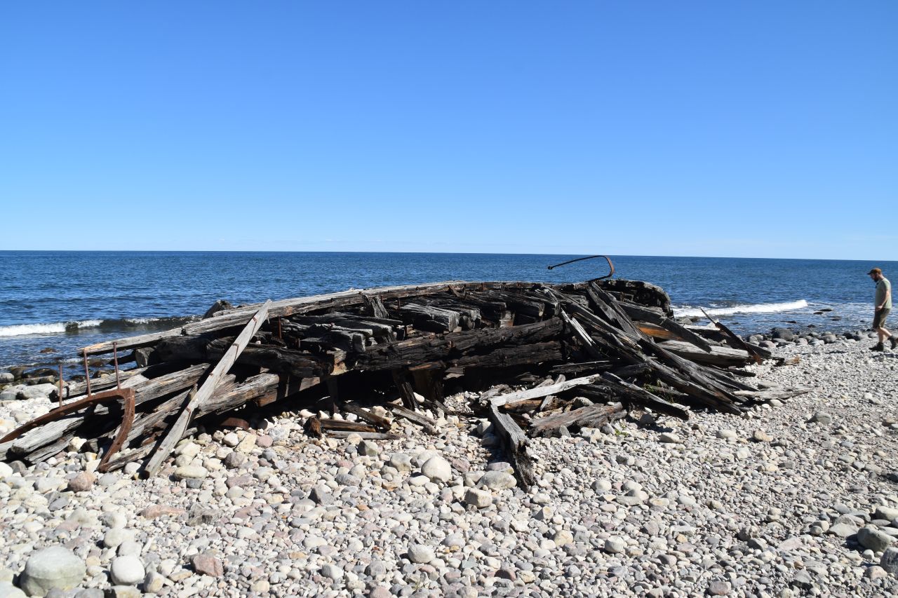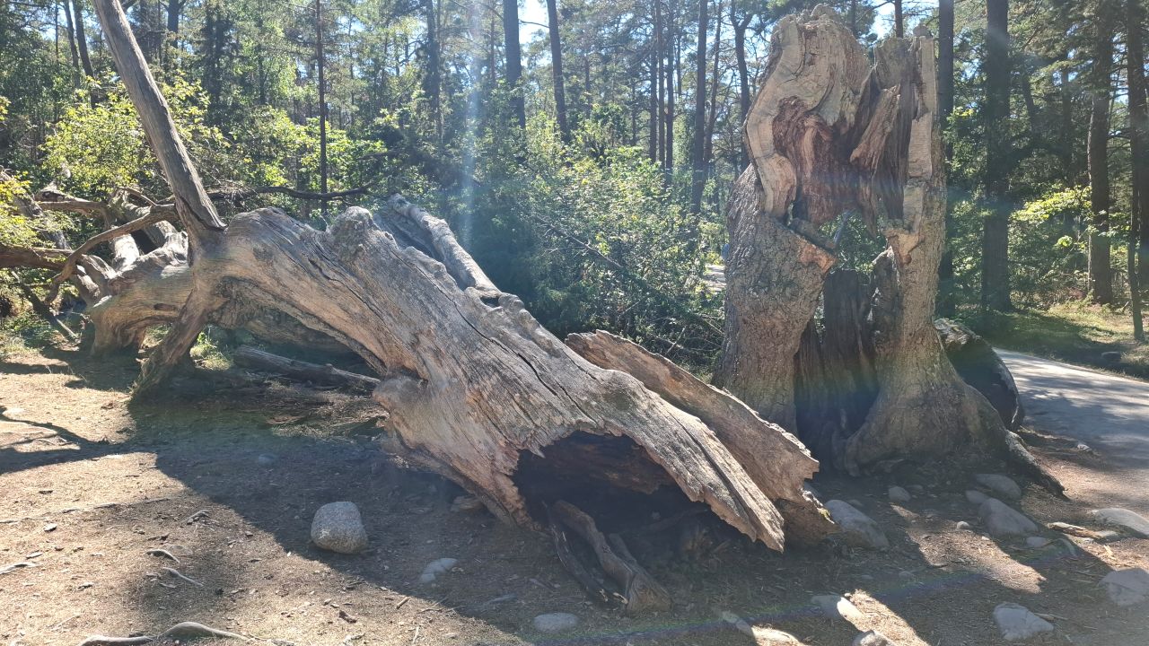 Im Trollskogen Naturpark wandern wir durch den Wald komisch gewachsener Bäume und sehen Wracks am Strand. Die letzte Etappe führt uns an einen langen Sandstrand zum Baden mit Feuerquallen. Das Meer ist ziemlich frisch. Micha hat wohl doch kurzen Quallenkontakt aber das gibt sich wieder am Abend.