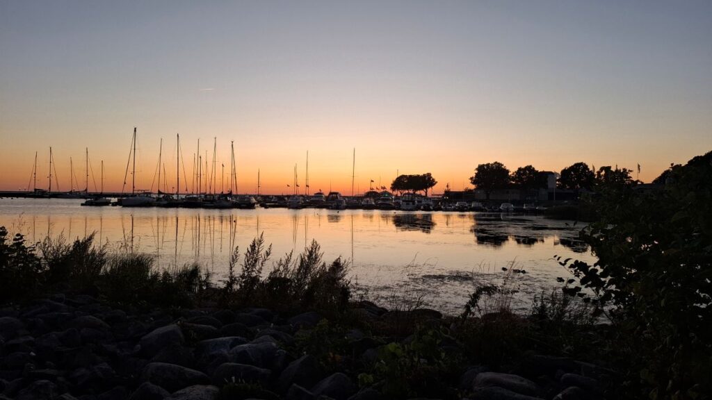 Dann gehen wir zurück nach Borgholm zum Ausruhen. Später beginnt es nochmals zu regnen. Und nach dem Essen bei „Ebbas“ regnet es auch ziemlich stark. Wir müssen uns wieder unterstellen. Aber später gibt es noch einen tollen Sonnenuntergang.