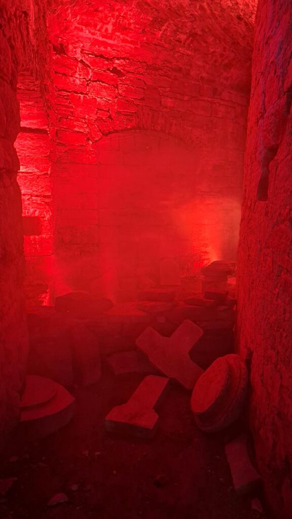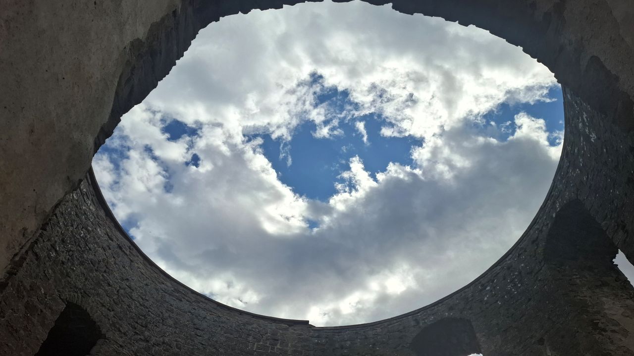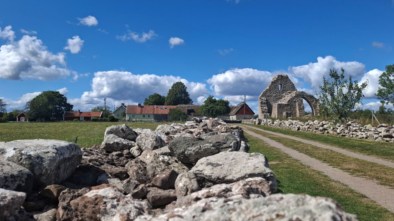 Dann ist Graborg an der Reihe, eine Fliehburg. Hier ist eine kleine Ruine einer Kapelle und riesige Steinhaufen zu einem großen Ring aufgehäuft. Auch hier spazieren wir umher.
