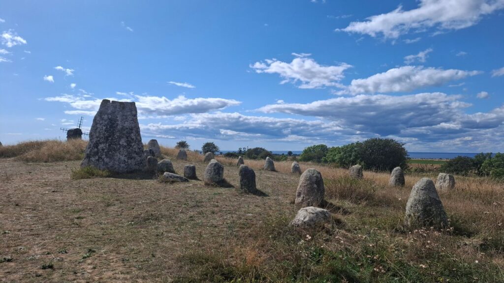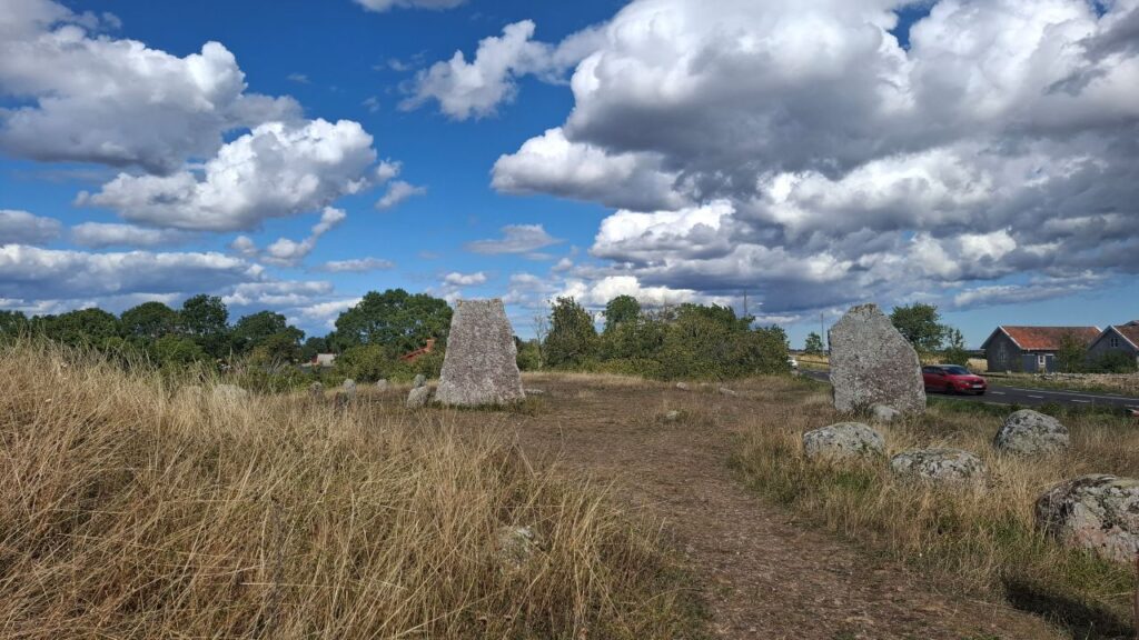 Danach geht es zu einem Steinkreis Gettlinge gravfält. Das ist auch direkt an der Straße nach Süden. Wir werden heute nicht in die Vergangenheit katapultiert, was wohl auch gut ist. Aber es ist schon interessant hier.