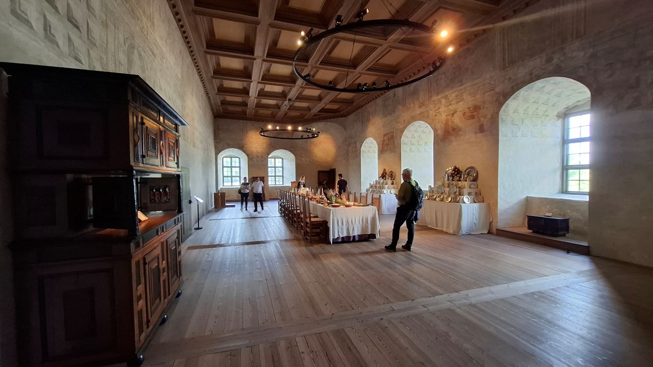 Heute beginnt unser Tag mit einem reichhaltigen Frühstück im Schloss. Wir hatten das gleich mitgebucht. Schloss und Frühstück sind sehr beeindruckend. So kann es nur ein guter Tag werden. Wir schauen uns das Husqvarna Museum an. Einst eine Waffenschmiede und heute ein international agierendes Unternehmen. Sehr interessant. Viele Gartengeräte wie Mähroboter und Trimmer und Sägen. Aber noch beeindruckender sind die Fahrräder, Mopeds und Motorräder. Es gibt auch eine Menge an Nähmaschinen. Also ziemlich gelungen. Dann geht es weiter.