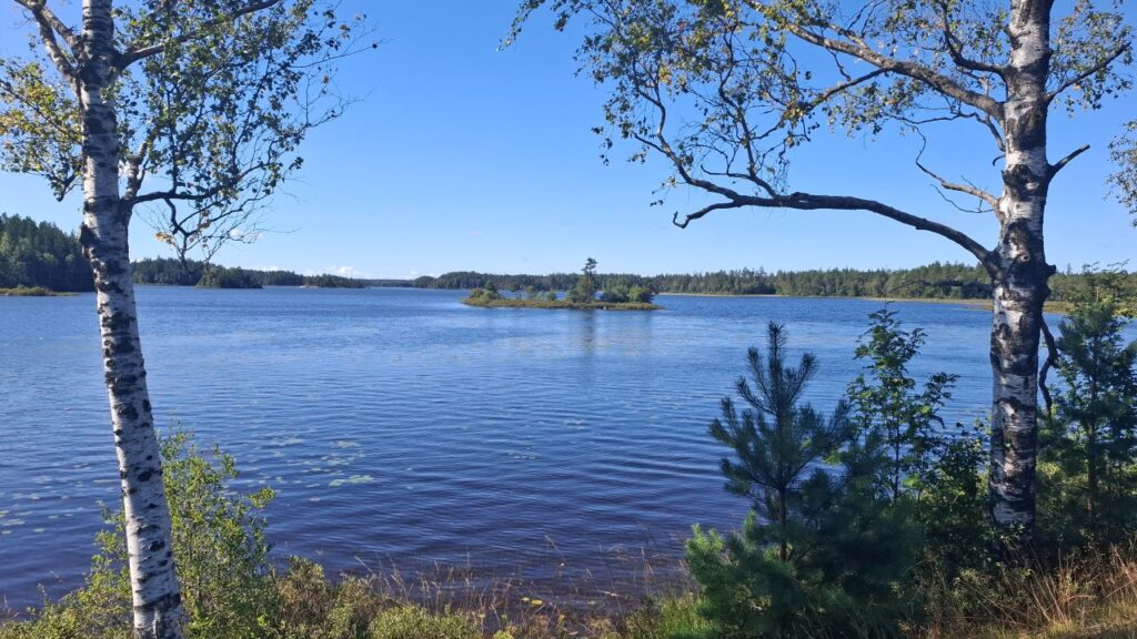 Heute machen wir die Wohnung sauber nachdem wir gefrühstückt haben. Dann verlassen wir Öland. Es geht über die Brücke an Kalmar vorbei Richtung Nordwesten. Wir halten einmal an eine See um uns die Beine zu vertreten und einmal um Kaffee zu trinken. Dann kommen wir noch am höchsten Wasserfall Südschwedens vorbei. Wir machen einen kleinen Rundgang. Dann geht es weiter.