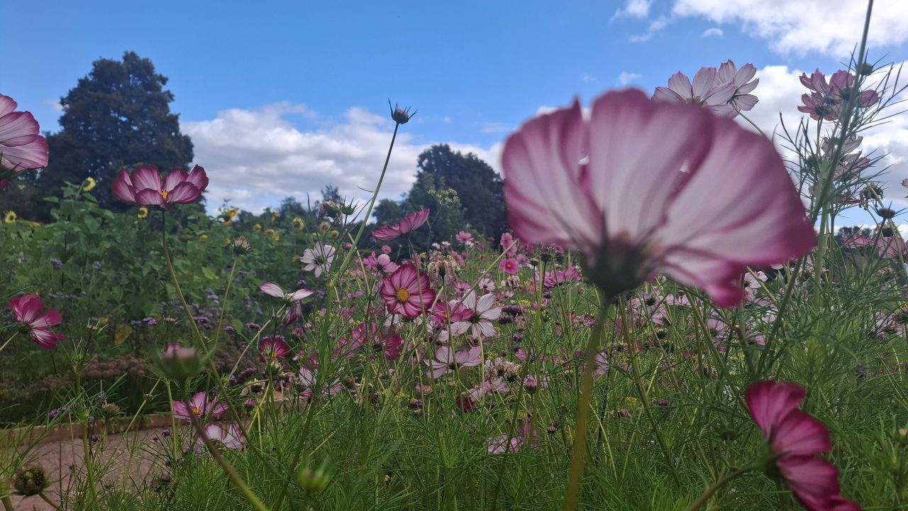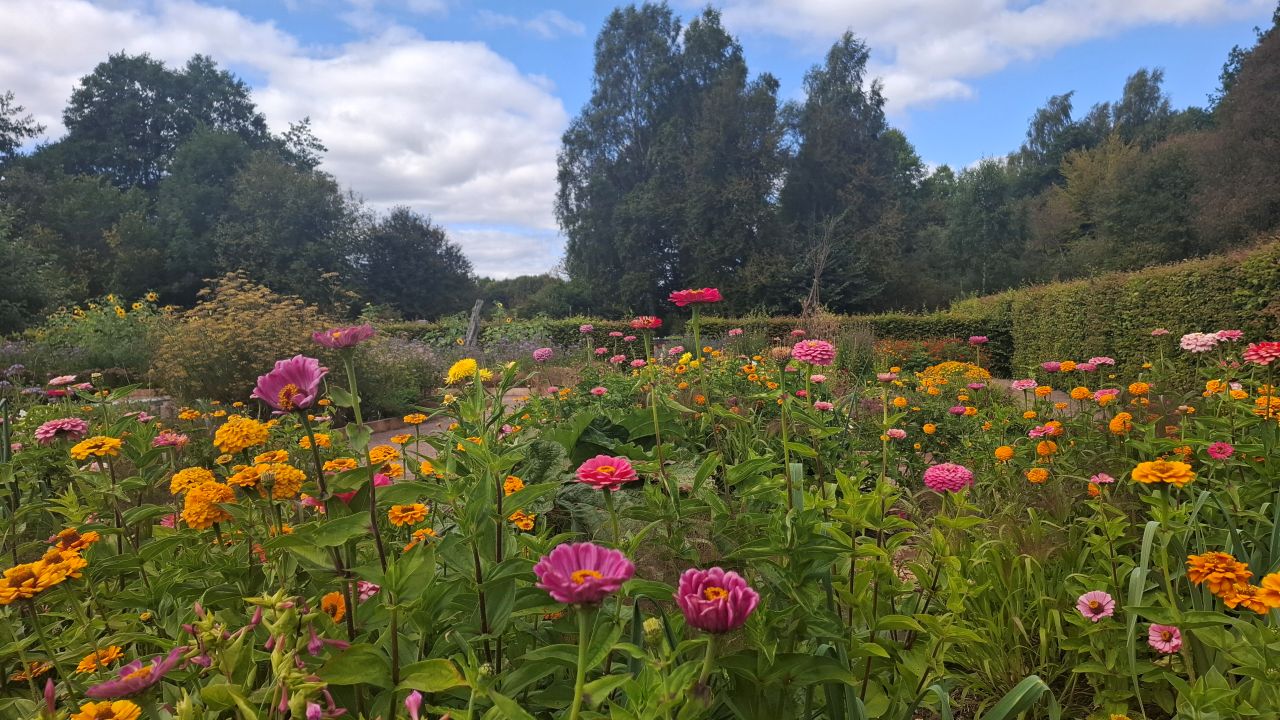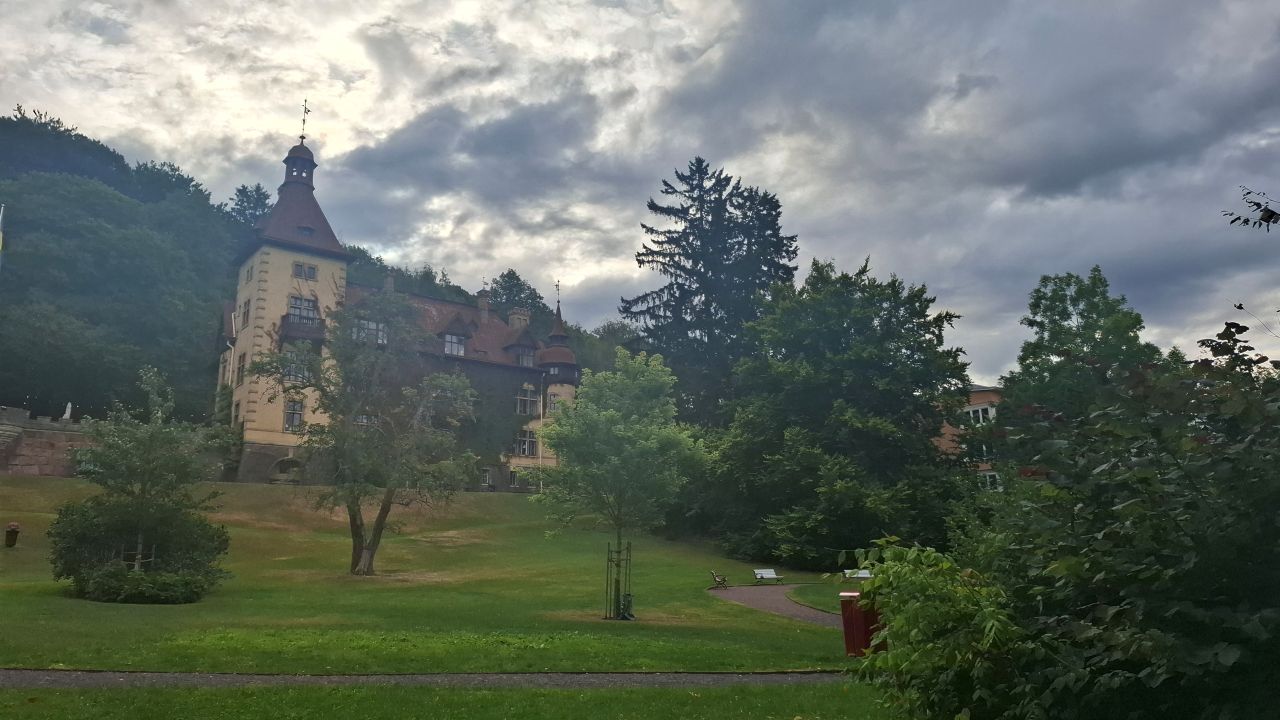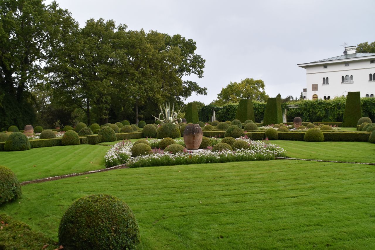 Dort angekommen geht es erst einmal ins Kaffee. Wir essen und trinken eine Kleinigkeit. Leider scheint es das Wetter nicht gut mit uns zu meinen. Es ist schon ziemlich dunkel am Himmel. Kurz nachdem wir den Schlossgarten betreten beginnt es auch zu regnen. Also stellen wir uns erst einmal unter. Eine feine kleine Gartenanlage will aber erkundet werden. Das Schloss kann man nicht besichtigen. Nachdem der Regen aufgehört hat schlendern wir durch die wirklich schön angelegten Gartenteile.