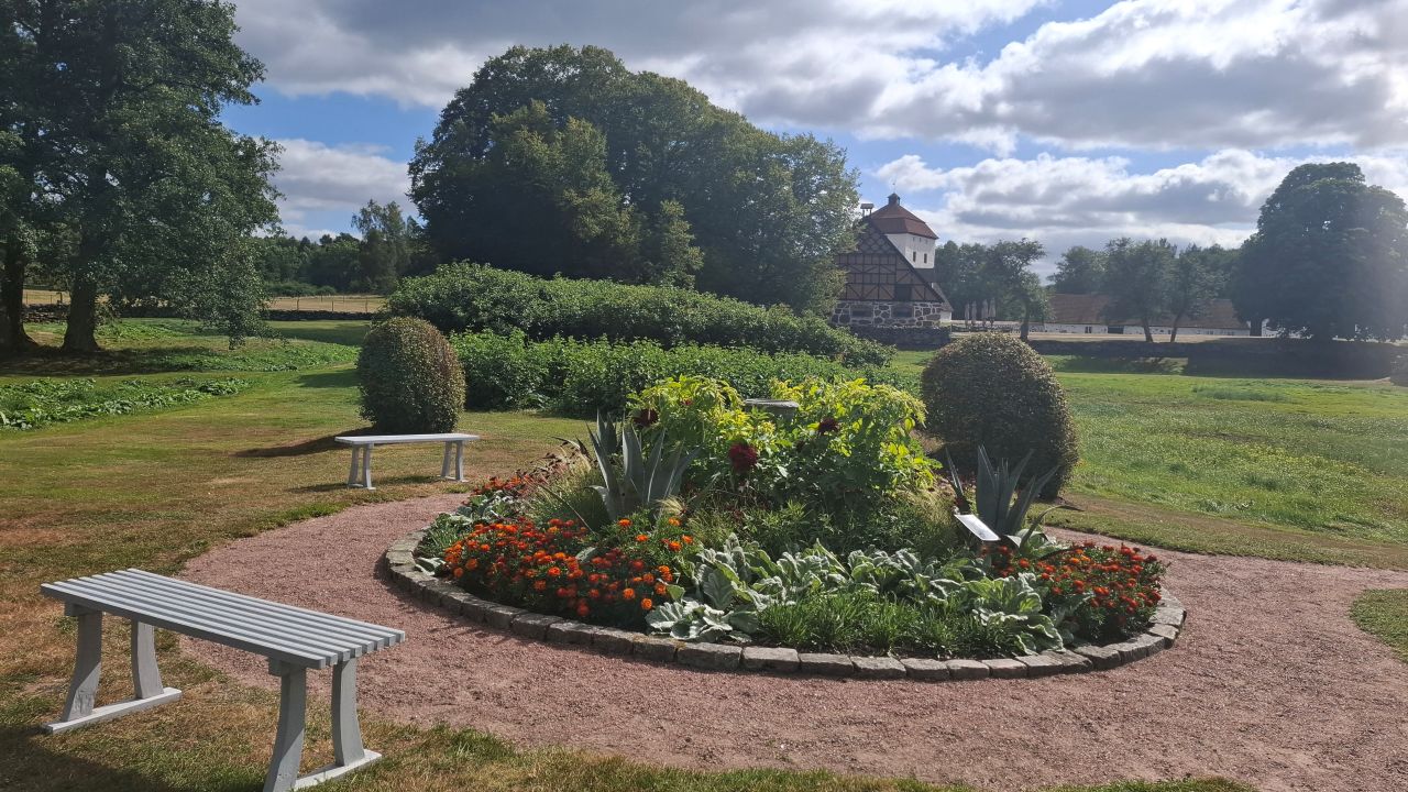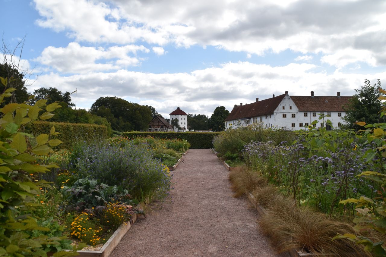 Wir halten noch bei einem Schloss. Das Hovdala Slott ist etwas anders als die Schlösser, die wir besucht haben. Das Gelände kann man frei betreten. Ein paar weiße Häuser sind hier verteilt aufgestellt und durch kleine Brücken verbunden. Auch ein kleiner wunderschöner Garten gehört dazu sowie einige Apfelbäume. Wirklich ein schönes Ausflugsziel.