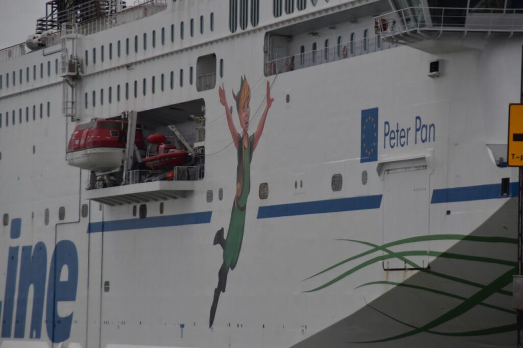 Dann fahren wir zum Fähranleger. Etwas früh aber die Peter Pan legt gerade an. Es dauert nun eine Stunde bis die unzähligen LKW ’s runtergefahren sind und nochmal so lange bis wieder unzählige raufgefahren sind. Dann können wir auch rauf. Das Zimmer ist besser. Die Betten auf der selben Ebene. Dann essen wir Lachs und legen ab. Auf dem Sonnendeck trinken wir noch etwas und gehen dann aufs Zimmer mit TV.