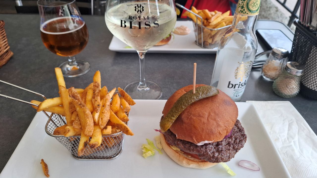 Micha holt noch ein paar Dinge aus dem Supermarkt. Abends essen wir Burger im „Pappa Bla“.