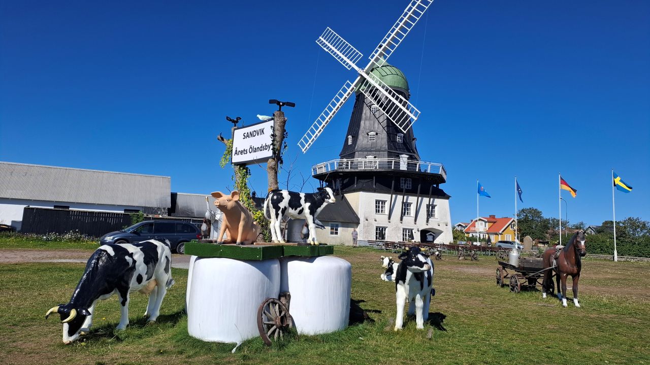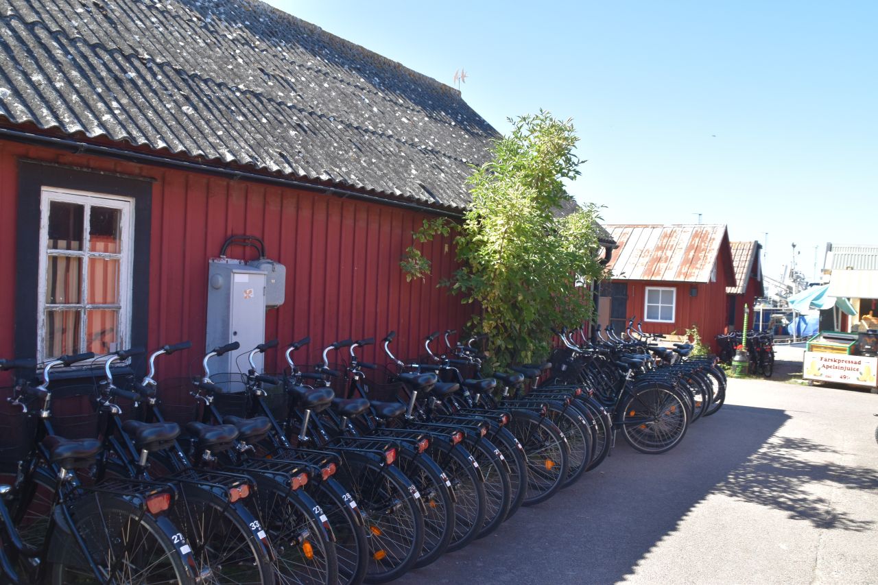 Heute fahren wir nach dem Frühstück in den Norden der Insel. Zuerst geht es nach Byxelkrok. Wir kommen an ein paar Mühlen vorbei. In Byxelkrok gibt es eine Fähre zum Festland, ein paar Fischerhäuser und viele Fahrräder. Wir essen Fisch und Chips an einer der Hütten und kaufen geräucherte Flundern.