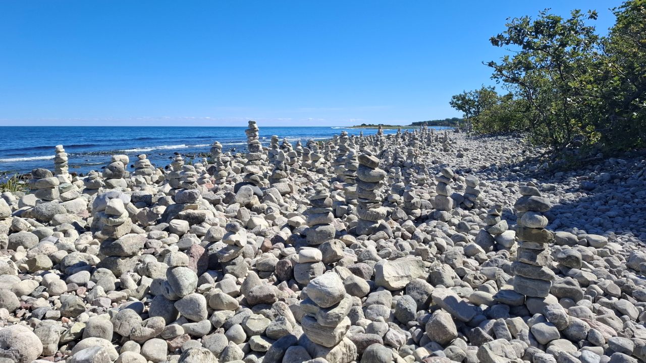 Dann geht es zum Leuchtturm Långe Erik. Eine kurze Wanderung um die kleine Halbinsel und ein Blaubeereis müssen es schon sein. Hier gibt es den ganzen Strand voll Trollhäuser. Ein kleines habe ich auch gebaut.