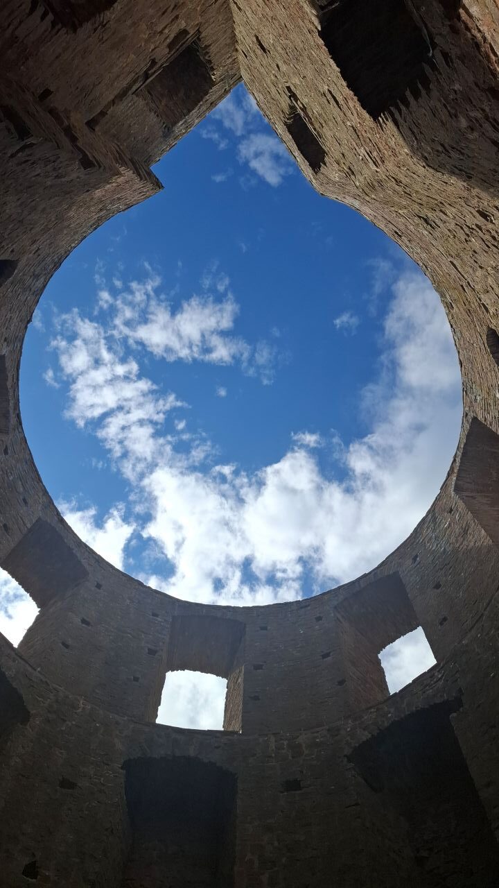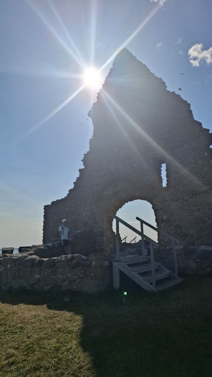 Es geht ein wenig durch den Wald und noch ein paar Treppen aufwärts. Dann stehen wir vor einer beeindruckenden Burganlage. Wir wandeln durch die Ruine und sind positiv überrascht. Es gibt eine Fotoausstellung über vergessene Plätze. Die Bilder sind echt gut. Für Kinder gibt’s ein Drachen-Spiel mit Rätsel lösen. Wir brauchen eine Weile um alles zu erkunden. Die Aussicht von oben ist wunderschön. Man sieht Borgholm und das Meer. Auch das Festland kann man sehen. Im Sommer gibt es hier wohl immer Konzerte. Bestimmt sind das tolle Events.