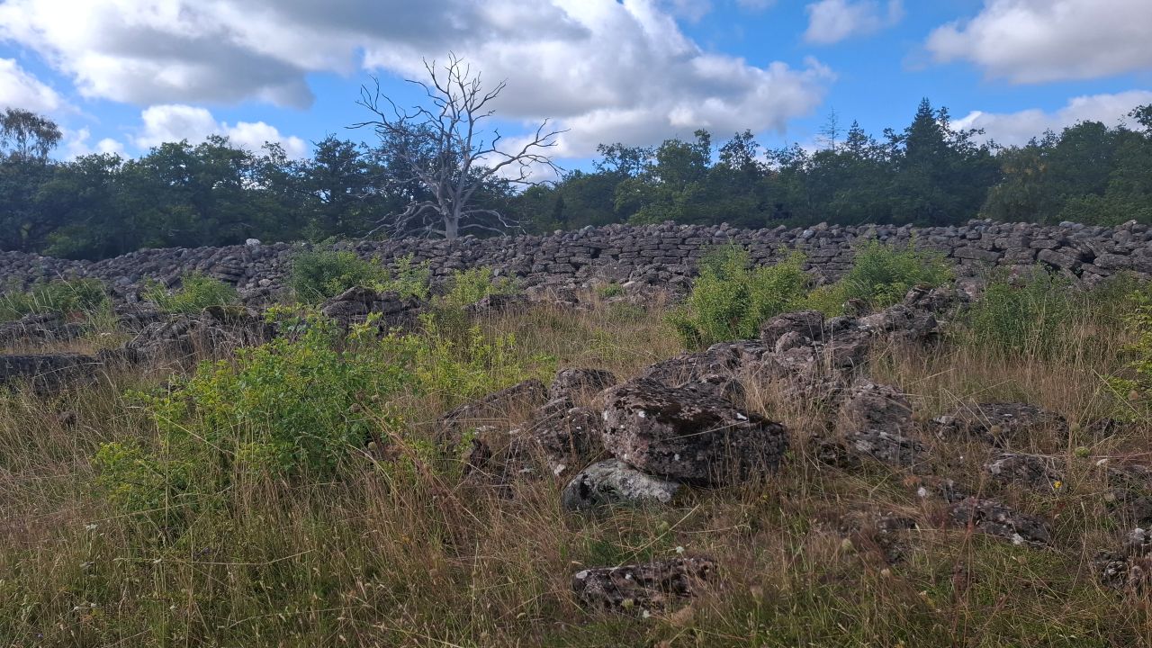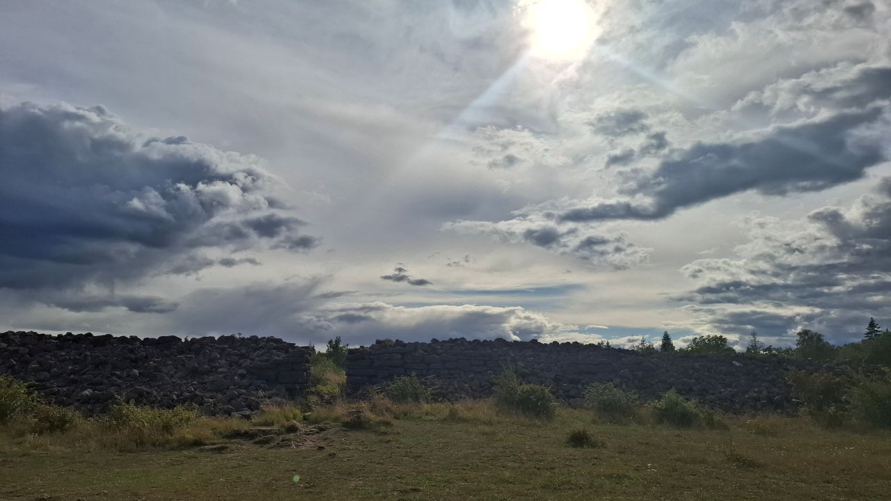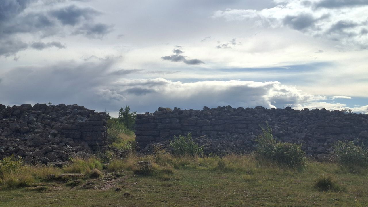 Dann ist Graborg an der Reihe, eine Fliehburg. Hier ist eine kleine Ruine einer Kapelle und riesige Steinhaufen zu einem großen Ring aufgehäuft. Auch hier spazieren wir umher.