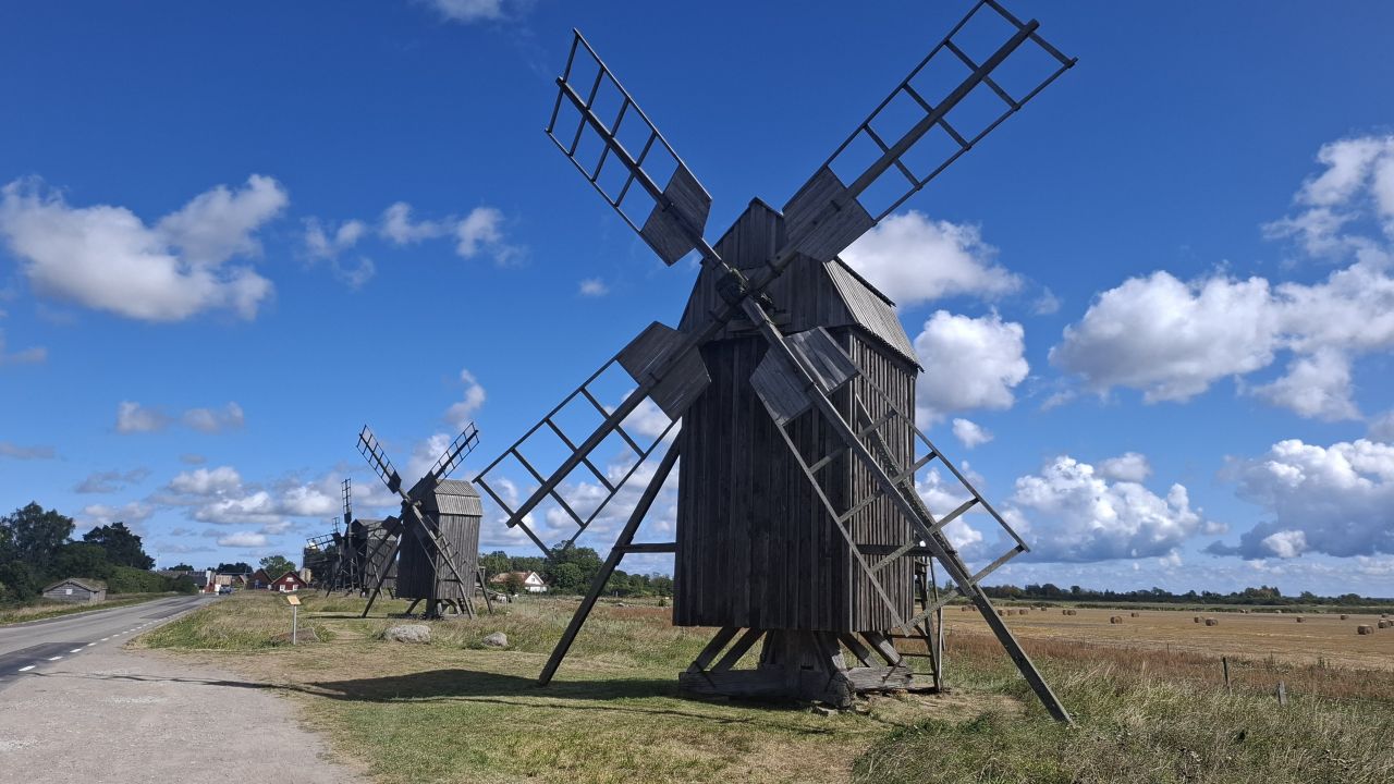 Es gibt hier Mühlen in einer Reihe. In eine kann man auch reinschauen. Die stehen direkt an der Straße und gegenüber ist ein Runenstein (Runsten). Das war auch einen Stop wert.