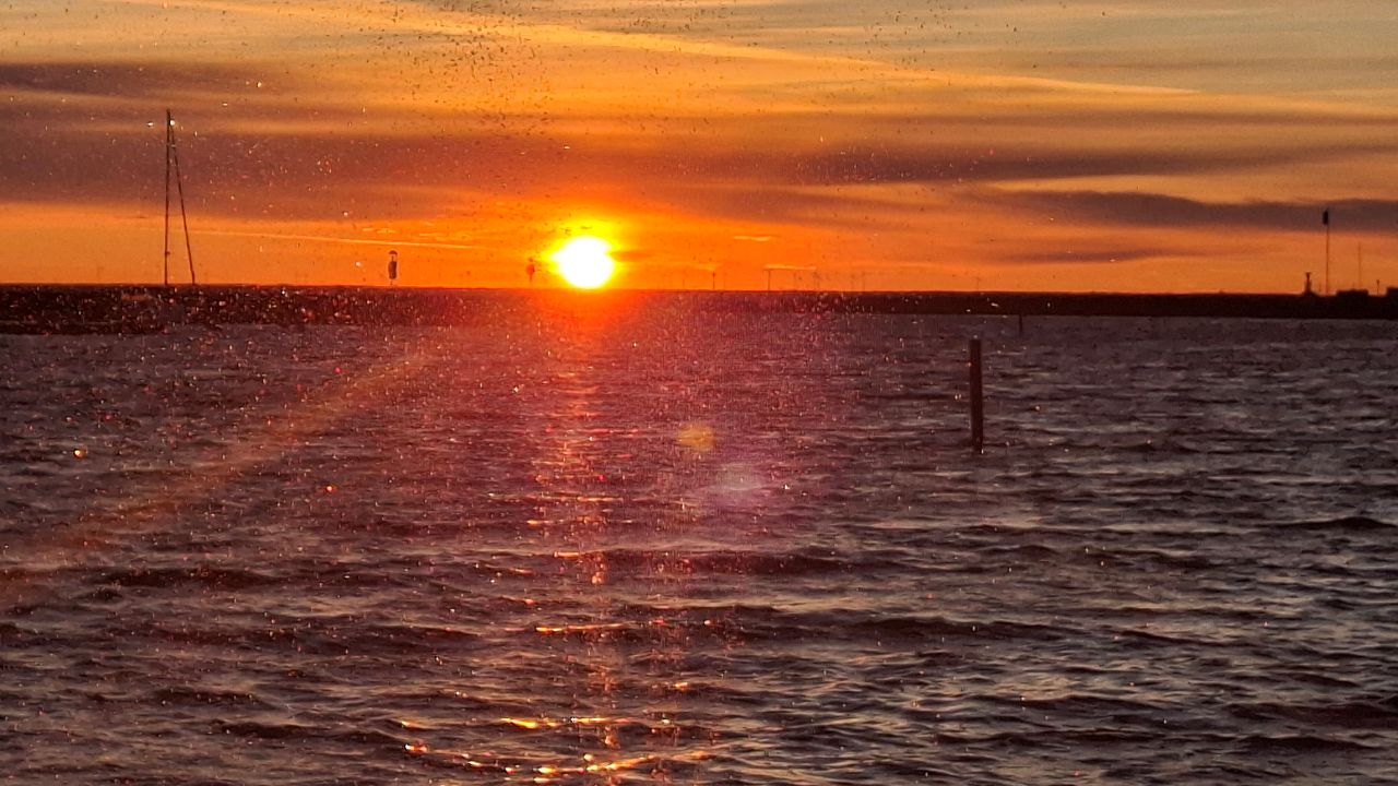 Hier steht der Lange Jan. Ein Leuchtturm. Es gibt auch ein geöffnetes Restaurant. Ich esse ein Krabbenbrot. Sehr lecker. Ansonsten gibt es Kühe, Schafe und Unmengen an Vögeln. Hier sind auch wieder einige Touristen. Dann fahren wir zurück.