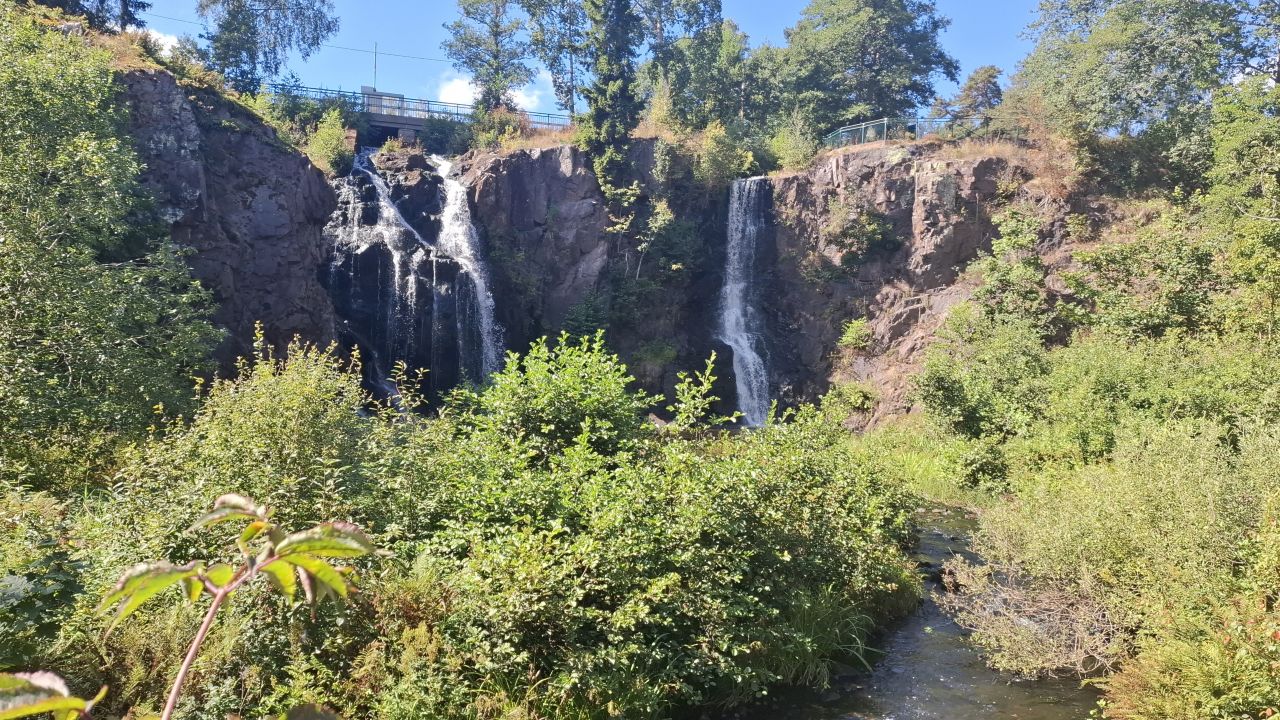 Heute machen wir die Wohnung sauber nachdem wir gefrühstückt haben. Dann verlassen wir Öland. Es geht über die Brücke an Kalmar vorbei Richtung Nordwesten. Wir halten einmal an eine See um uns die Beine zu vertreten und einmal um Kaffee zu trinken. Dann kommen wir noch am höchsten Wasserfall Südschwedens vorbei. Wir machen einen kleinen Rundgang. Dann geht es weiter.