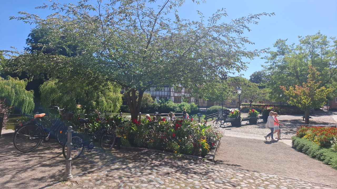 Wir halten noch bei einem Schloss. Das Hovdala Slott ist etwas anders als die Schlösser, die wir besucht haben. Das Gelände kann man frei betreten. Ein paar weiße Häuser sind hier verteilt aufgestellt und durch kleine Brücken verbunden. Auch ein kleiner wunderschöner Garten gehört dazu sowie einige Apfelbäume. Wirklich ein schönes Ausflugsziel.